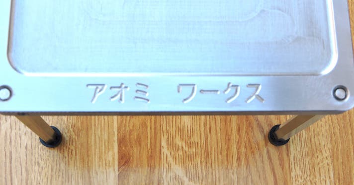 ネームミーリング刻印(鉄板表面端部):ひらがな・カタカナ・英数字の中から、最大12文字まで1行で刻印可能。切削加工(ミーリング)で刻むため文字が消えにくく本格仕様で熱や油にも強い。使い込むほど味わいが増す自分だけの鉄板に。