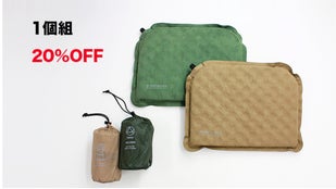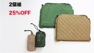 キャンプ・登山・スポーツ観戦・車・花見・運動会・公園・レジャーシートの代わりにと様々なシーンで使える良い感じのエアクッションを作りました。大柄な方でも安心して使えるサイズで収納ケースに入れるとミニトートにもすっぽり納まるほど小さくなります。素材は、洋服や靴、バックなどにも使われる今流行のフェイクスエードを使用。機能、質感、持ち運び時のサイズなど、使う人のことを考えた作りになっています。カラーはモスグリーンとサンドベージュの2種類。