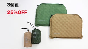 - バルブを緩めるだけで自動で膨らむクッションはレジャーシートの代わりにもなります。