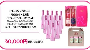 内容量:ローズハイボール 300ml×12本、ラヴィアンローズ(ローズシェリエ 500ml×1本、セイントローズ 500ml×1本)、スパークロゼ 200ml×3