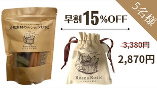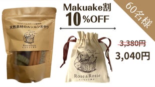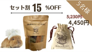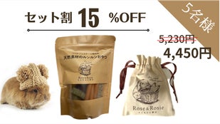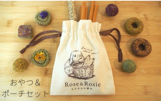 天然素材のルンルンおやつとアメリカンファジーロップのロージーちゃんをモチーフにしたキュートなポーチをセットにしました!