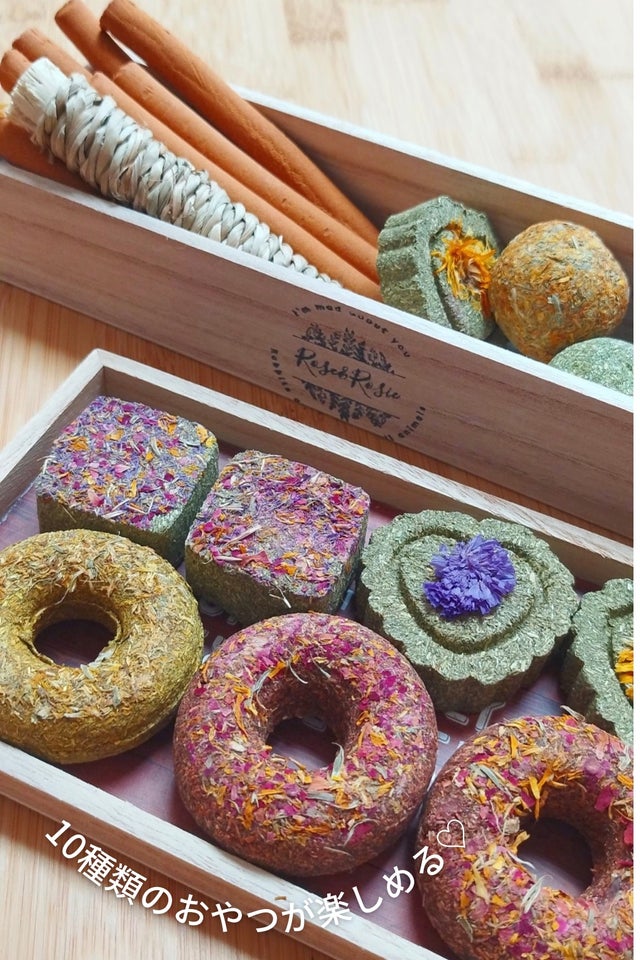 自然界の小動物たちが毎日、様々な食材を探して食べるように…色々な味を楽しめるように10種類のおやつを一袋にしました!動物たちにとって食べることは、大きな楽しみです♡様々な種類のおやつで生活の楽しみを増やしてあげられます。お気に入りのおやつを見つけてください。
