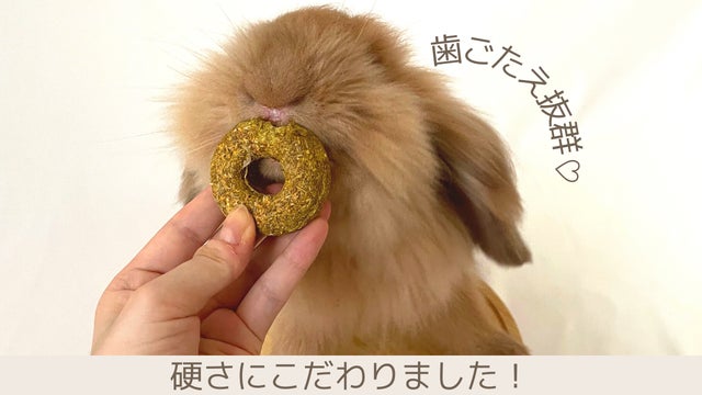 うさぎさんがぴょんぴょん楽しそうに遊んでいる様子は見ているこちらも楽しくなります。今回、新発売のおやつはガリガリ噛んで遊べるおやつです。おやつの販売までには、製造を依頼しているメーカーと何度もやり取りを重ねました。代理業者などは頼まず、製造メーカーと直接やり取りすることで、意見を伝えながら商品の製造を依頼できました。