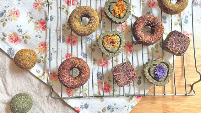 オーストラリア産のオーツ麦を可愛らしいドーナツにしました。オーツヘイ好きのうさぎさんに人気のドーナツです♪ストロベリーとカレンデュラの2種類の味が楽しめます。