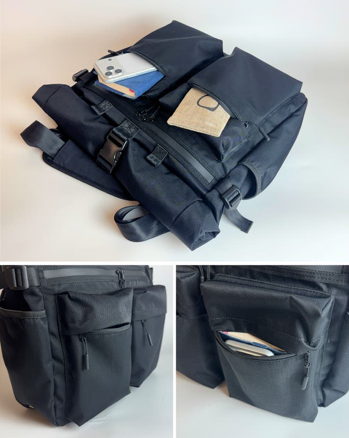 - 【ロールトップ×大容量】PC収納と多彩なポケット!形を変えて20Lから31Lまで拡張!