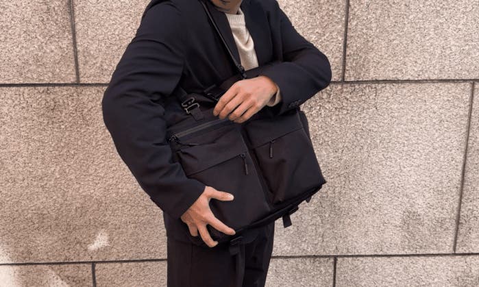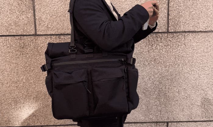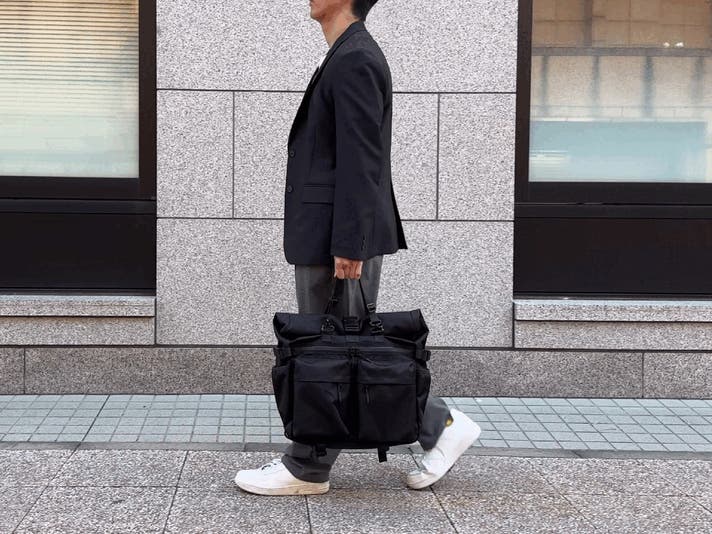 付属のハンドルベルトを使用することでビジネスシーンにも対応するスタイルに。