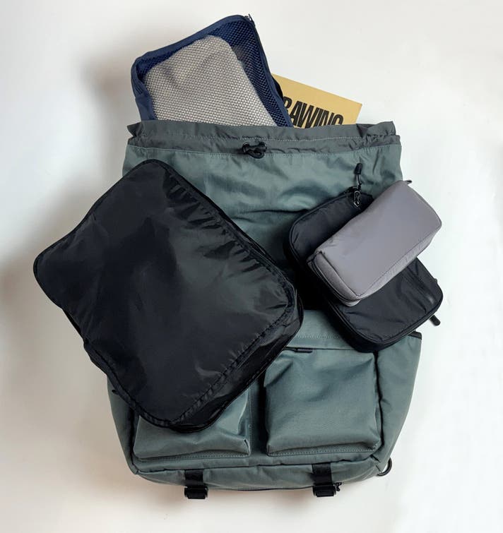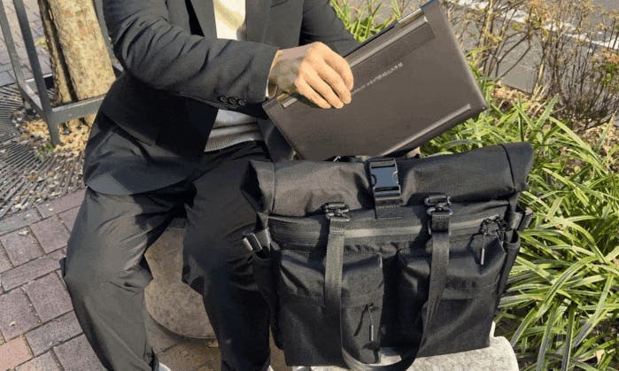 ロールトップを広げたときの収納スペースの有効容量は31Lまで拡張され、行きだけ荷物が多い日や帰りに荷物が増えそうな時でもこのバッグひとつで対応できます。
