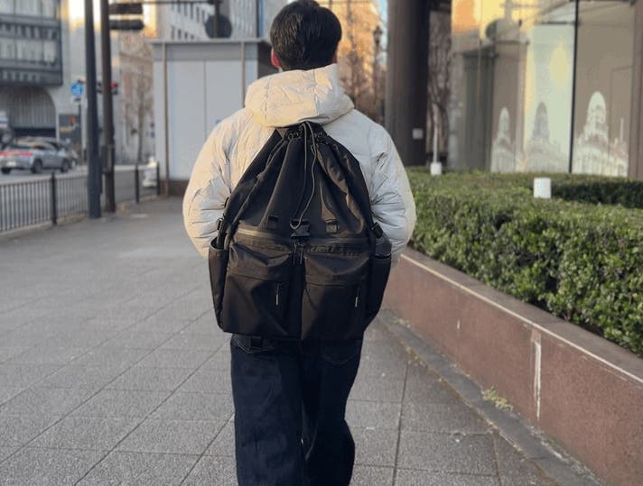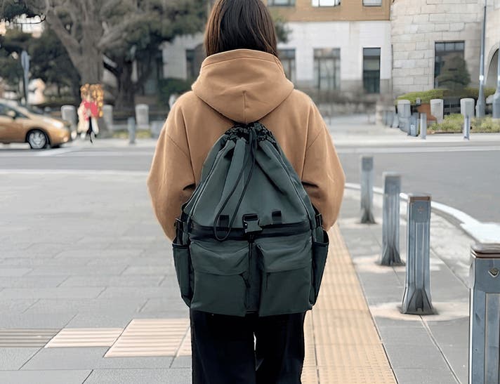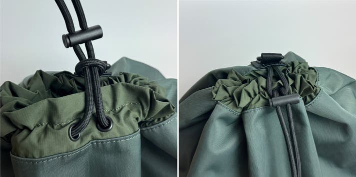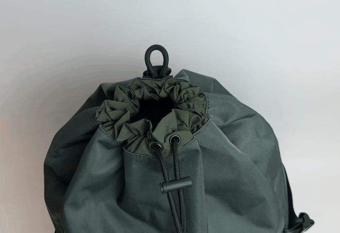 リュックの開閉はドローストリングをギュッと絞めるだけ!