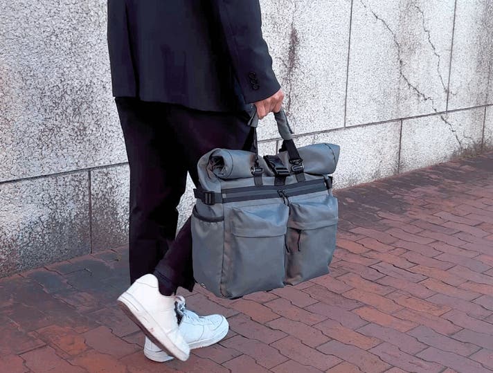 ロールトップを広げると大容量バックパックに早変わり!急に荷物が増える日もすぐに対応可能です。