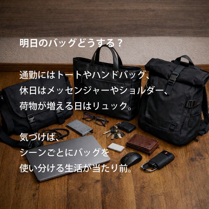 日常の変化に合わせて姿を変えるバッグです。