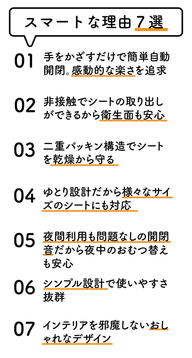- 手をかざすだけでフタが開く。手が汚れてる時の使用に便利&フタの閉め忘れの心配無し。