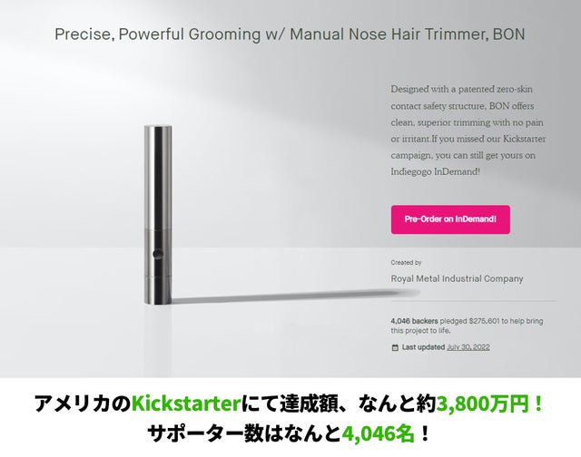 「Makuake(マクアケ)」は、実行者の想いを応援購入によって実現するアタラシイものやサービスのプラットフォームです。このページは、 プロダクトカテゴリの 「鼻に入れて回すだけ!精密かつ強力な手動ノーズトリマー・鼻毛カッター「BON」」プロジェクト詳細ページです。