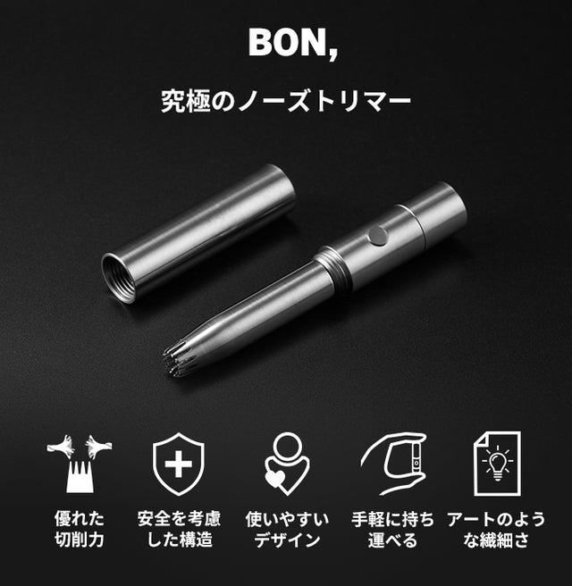 BONは不要な鼻毛だけを安全かつ効果的にカットできるよう、人間工学に基づいて設計されています。