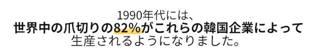RoyalMetalが爪切りの新たな基準を設けた後、韓国企業は世界の爪切り市場をリードし始め、1990年代には世界中の爪切り市場の82%を韓国企業が占めるようになりました。