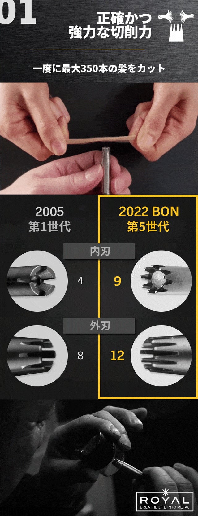 60年にわたり積み重ねてきた独自の金属製造技術があれば、全てのノーズトリマーに新たな基準を打ち立てる製品を生み出すことができると信じ、挑戦し続け、そして、ついにBONの開発に成功しました。
