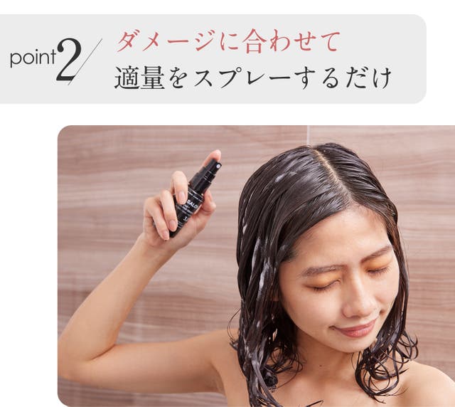 特にダメージが気になった時に、シャンプーで泡立てた頭皮から毛髪全体に適量塗布するだけ。簡単にサロン級の濃密ケアが可能です。