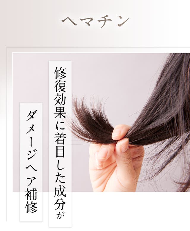 - 補修効果の高い「ヘマチン」により、カラーやパーマなどあらゆるダメージを受けた髪の毛を補修します