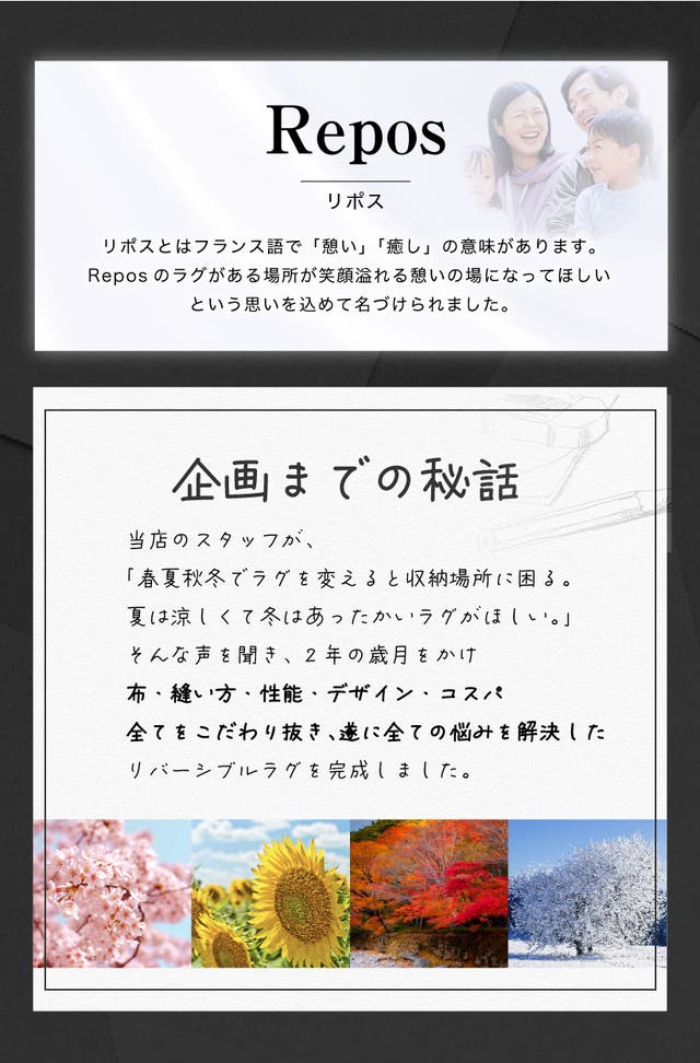 デザインにもこだわり、どんなお部屋にもマッチするシンプルで上品な仕上がり。シーズンごとにラグを替えなくても、このラグひとつで季節感を楽しめるのです。忙しい毎日を送るあなたにぴったりの、季節を超えて長く愛用できるラグ。