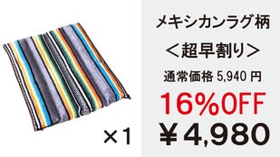 ・超超早割り20%オフ メキシカンラグ柄1枚