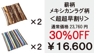 ・超超早割り30%オフ 薪柄2枚、メキシカンラグ柄2枚