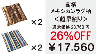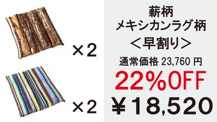 ・早割り22%オフ 薪柄2枚、メキシカンラグ柄2枚