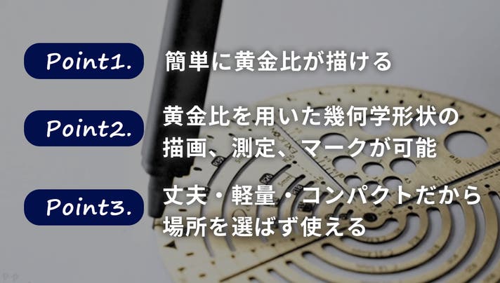 黄金比という名前は知っていましたが、自分で描くのは本当に難しい上に、計算や測定が面倒で、もっと簡単に正確に描けたらいいのに…とずっと感じていました。