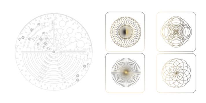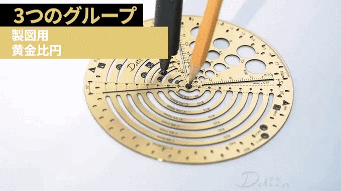 - 黄金螺旋、黄金三角形、放物線など、複雑な幾何学的形状を正確に描けるスケール