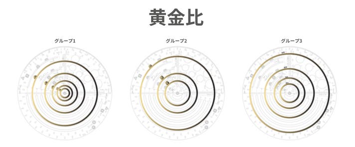 黄金比に基づく半径の円の3つのグループ