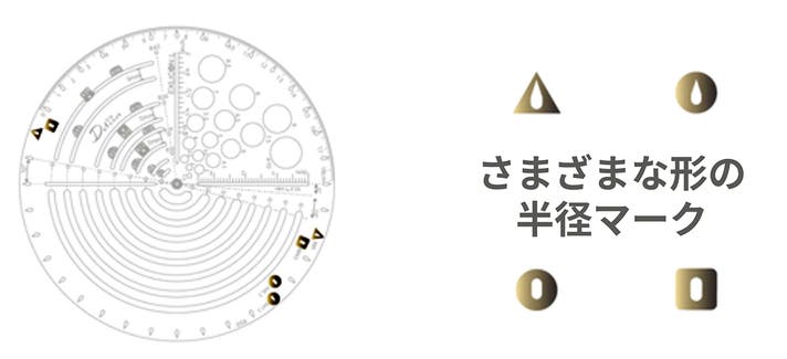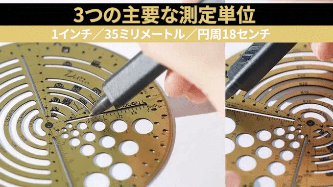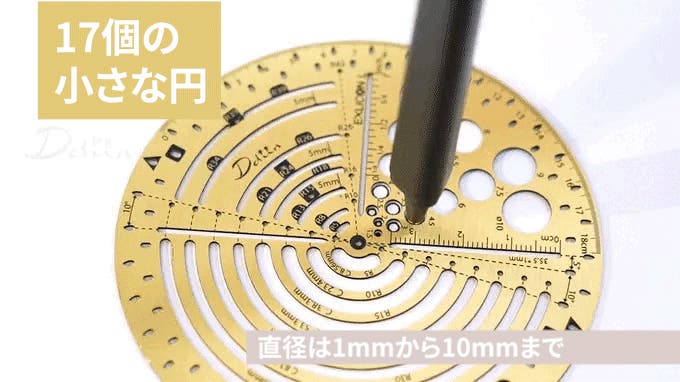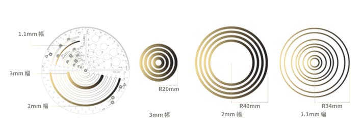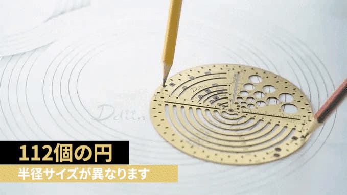 円ツールのデザインは、さまざまな半径サイズに対応しており、最大112個の異なる円を描くことができます。