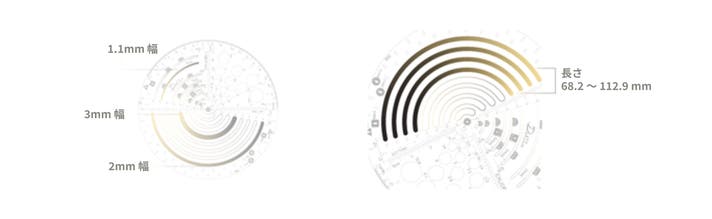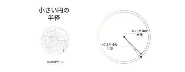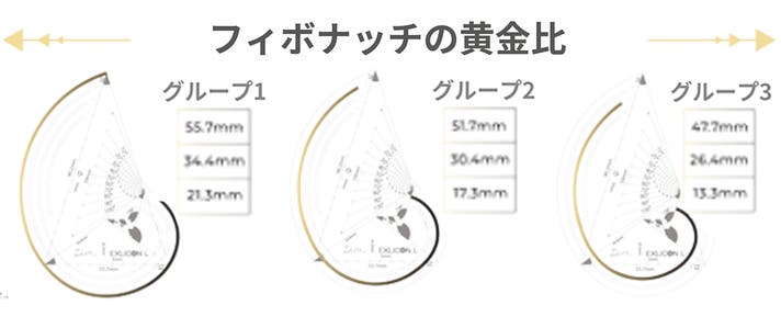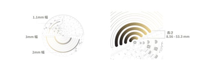 55.7mm、51.7mm、47.4mmの半径を持つ3本のスパイラルラインがあります。これらのラインは、フィボナッチ黄金比の3つのラインを形成できます。