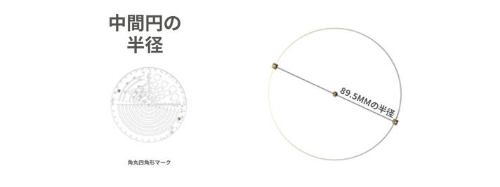 水滴型でマークされた穴は、半径45.5mmおよび47.5mmの円を示すためのものです。