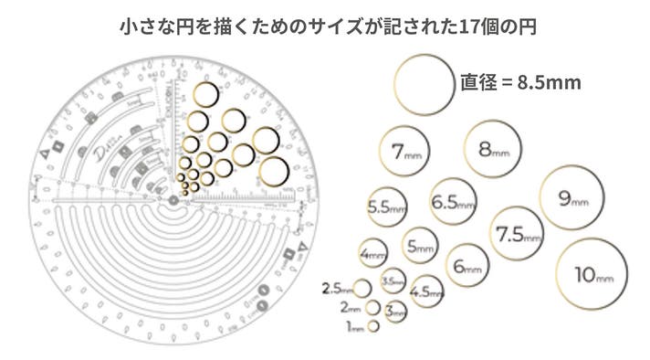 このツールには直径が1mmから10mmまでの17個の小さな円があります。
