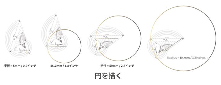 2本のペンを使用することで、半径5mmから84mmの円を描くことができます。