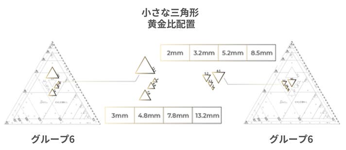 空洞三角形のマークは、80mmから始まる黄金三角形セットを示します。