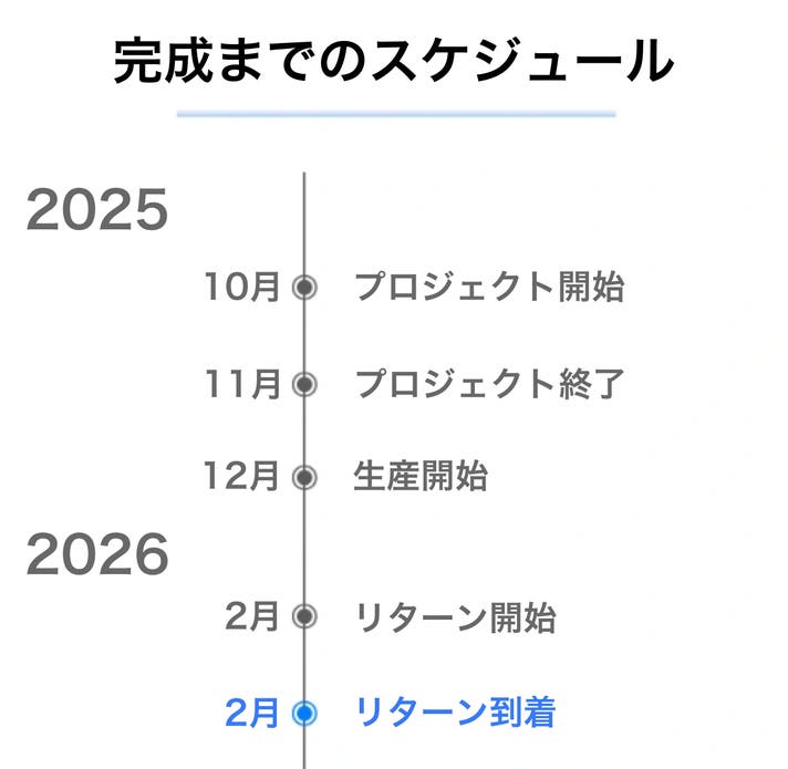 このプロジェクトはAll in型です。目標金額の達成に関わらず、プロジェクト終了日の2025年11月15日までに支払いを完了した時点で購入が成立します。