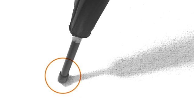 傘にカバンをかける時に、床に接する石突きの滑りにくさも気になります。現行モデルではこの部分が金属のため、電車の床やコンクリートの場合は大丈夫ですが、大理石やタイルのような硬くてツルツルする床材の場所では不安もありました。2017ニューモデルでは石突きにエラストマー樹脂製のキャップを標準装備。床の材質を選ばない頼れるストッパーとなります。
