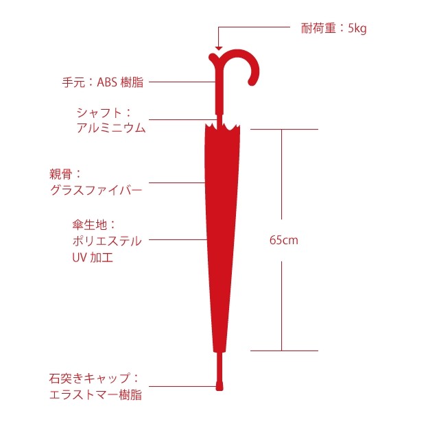 耐荷重量:5kg(傘を閉じ垂直に立てて手元に荷物をかけた場合)