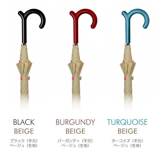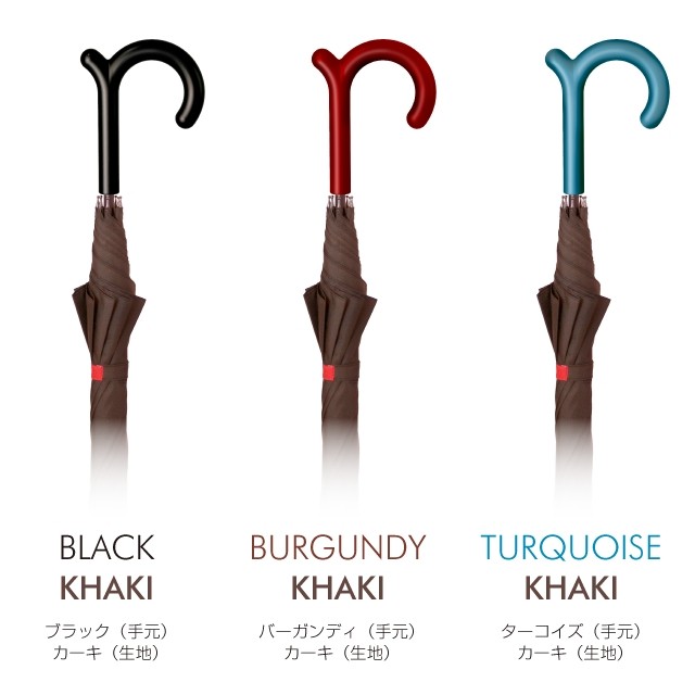 「rumbrella」のアイデンティティである手元に定番のブラック以外に2色を追加して、傘生地のカラー(5色)と自由に組み合わせて自分好みの「rumbrella」を作ることができます。個性的なコーディネートで、雨の日を楽しく飾ってください。