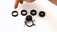 A.ランベルは5段階のサイズ調整が可能です。サイズの調整には付属のシリコン製アジャスターをご使用ください。(直径17mm〜29mm)