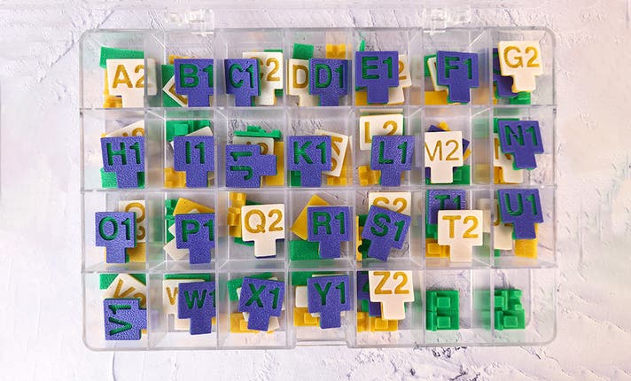 - 見やすい配色とアルファベット順に分けられる専用収納ボックス付きで、作業効率アップ!