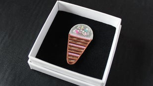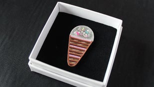 ・完成したブローチ「Ice cream」1点。
