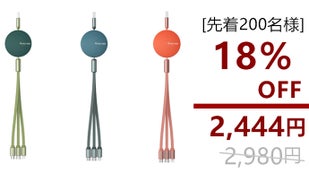 【Makuake割 5%OFF】 3in1巻き取り式充電ケーブル×1