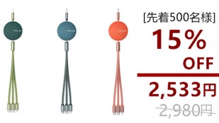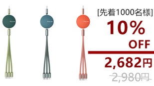 【超早割 15%OFF】 3in1巻き取り式充電ケーブル×1
