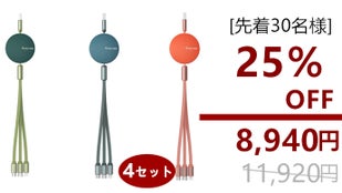 【4点セット早割 25%OFF】 3in1巻き取り式充電ケーブル×4