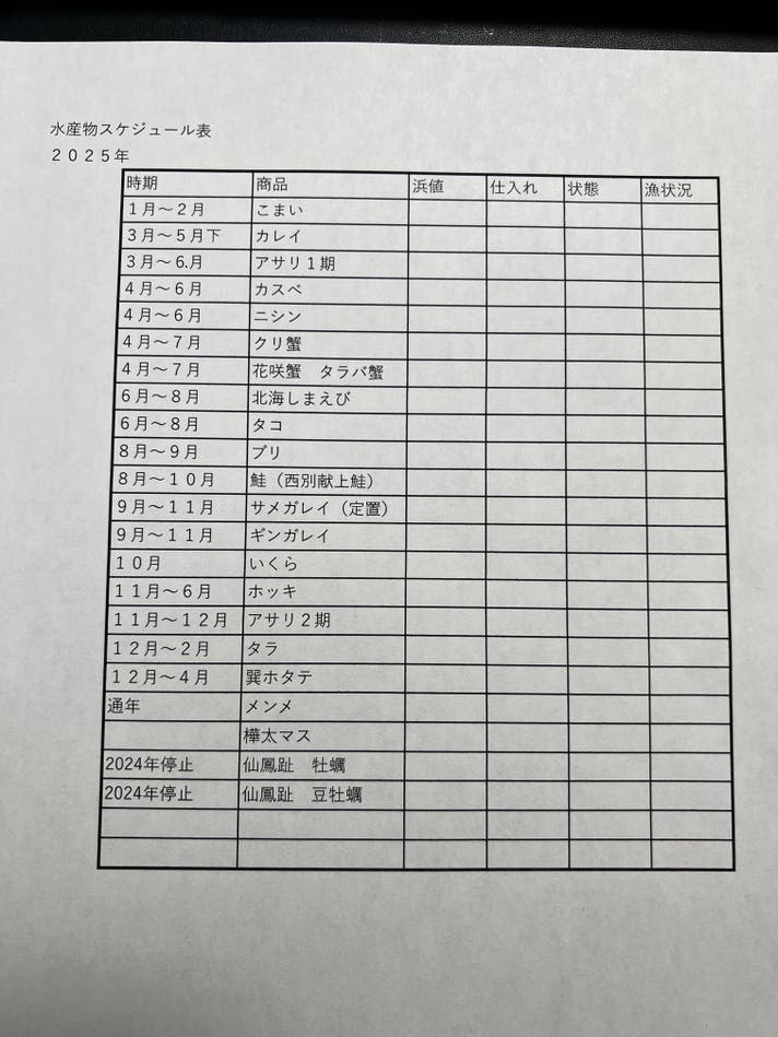 A. 漁期・天候・水揚げ状況を優先しつつ、可能な限り調整(確約はできません)。希望は備考欄へ。
