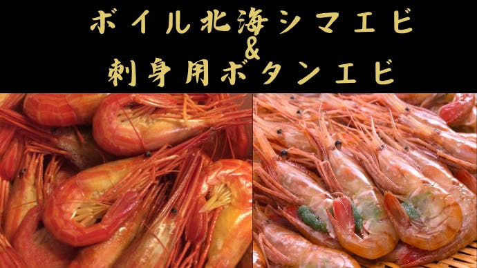 ・ボイル北海シマエビ 300g または 刺身用ボタンエビ 300g + 北海道産 旬の剥きたてホタテ貝柱 300g