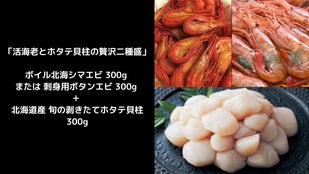 海鮮の極み、旬の味わい活海老とホタテ貝柱セット「活海老とホタテ貝柱の贅沢二種盛」