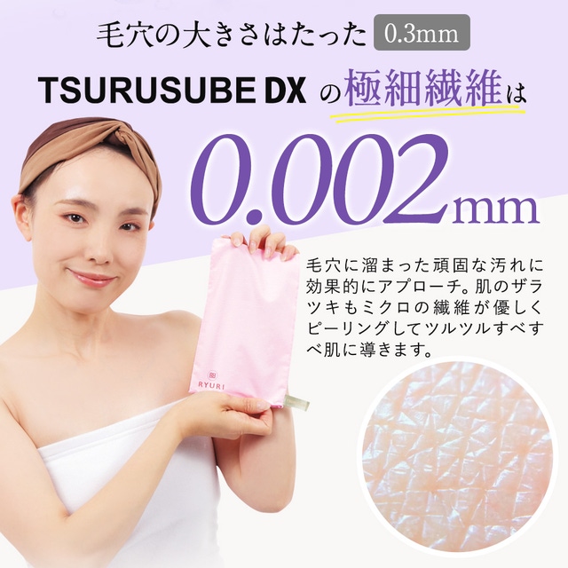 RYURI TSURUSUBE DX (リュウリ ツルスベ デラックス)は頑固な毛穴の汚れ・ざらついた角質除去に特化した美肌洗顔クロス RYURI TSURUSUBE(リュウリ ツルスベ)の進化バージョンです。