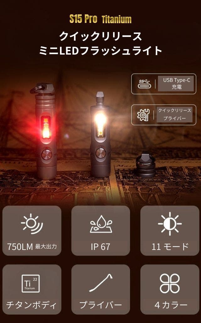ミニプライバーを隠し持つチタン製ライト、『S15 Pro Ti』。