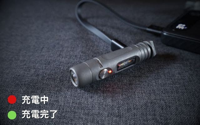350mAhバッテリー内蔵で、付属のUSB-Cケーブルで簡単充電。約50分でフル充電が可能でMoonライトモードでは最大30時間使用可能です。